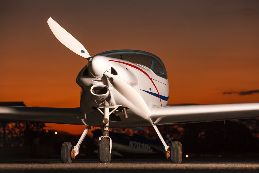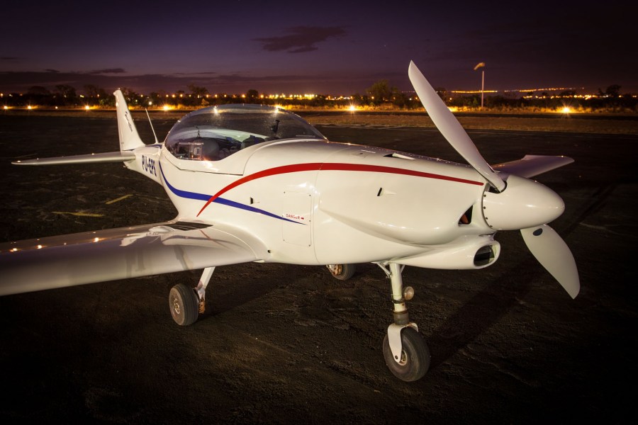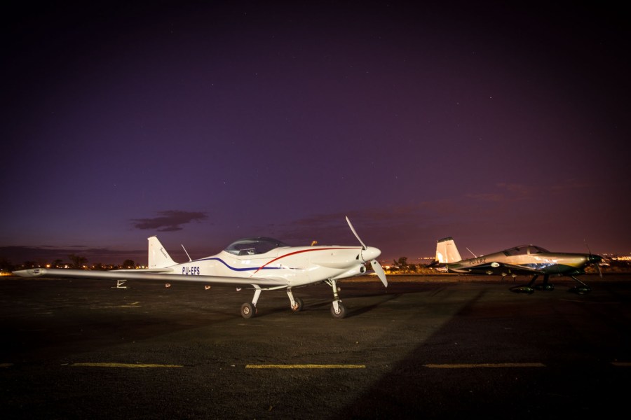 O sol se pôs. Essa foi a hora de começar a fotografar essa aeronave Fascination que contrastou com o manto da escuridão noturna.