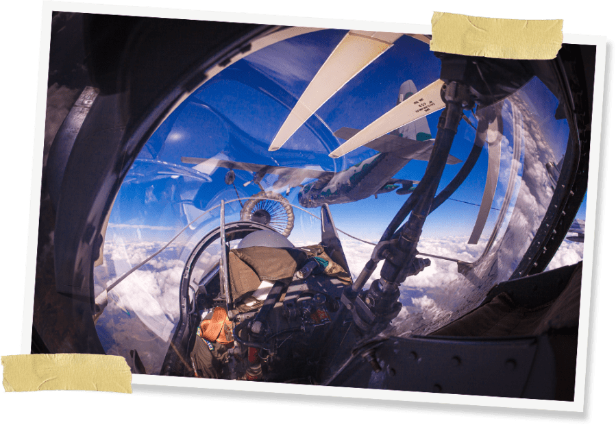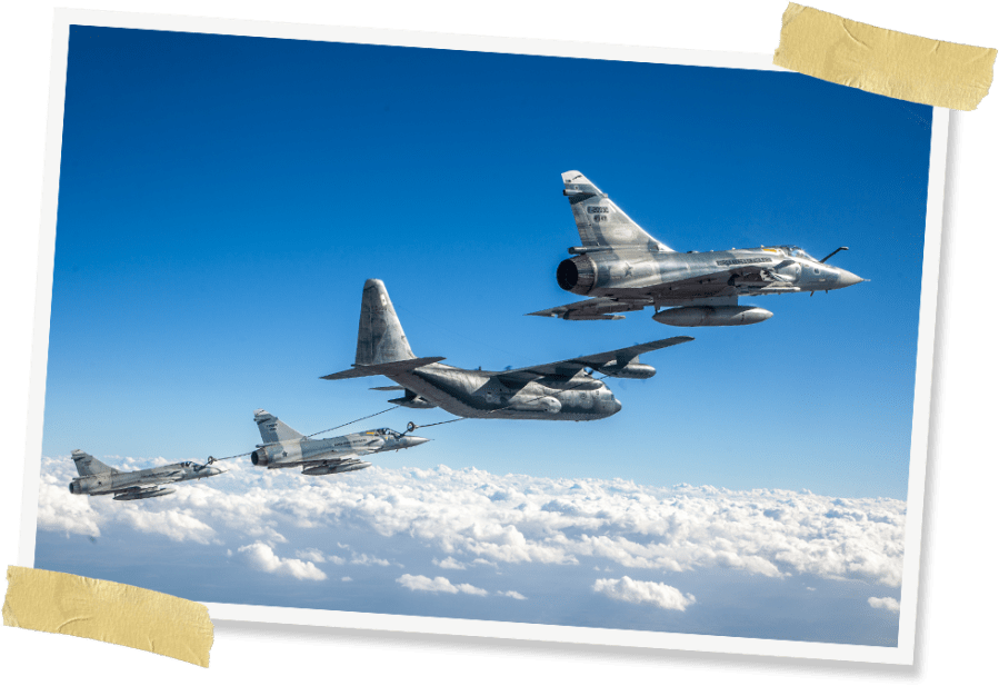 Depois de termos “completado o tanque”, era a vez dos demais membros da esquadrilha beber o precioso líquido proveniente do KC-130.